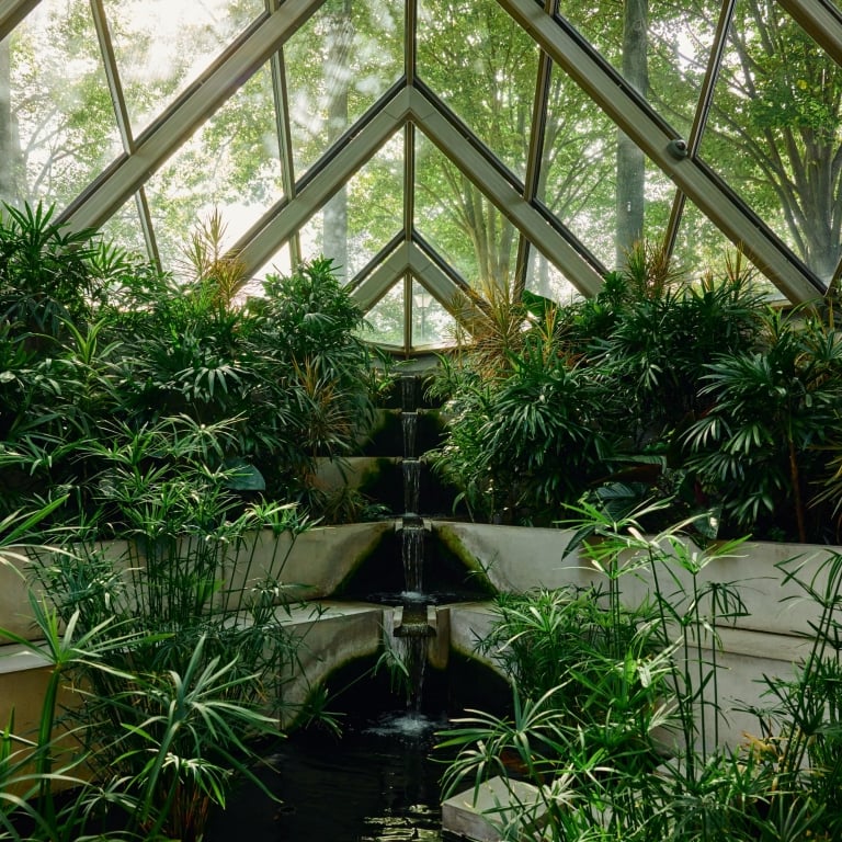 A truly magical place designed in fantastic form, with a glass pyramid, a cylindrical copper structure, and a transportive water garden. Held for non-denominational gatherings and ceremonies.