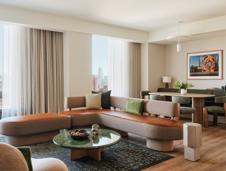 Elevate your stay with our Exclusive Suite Upgrade at The Atlas Hotel. Book one of our limited suites and enjoy dining perks and extended arrival or departure alongside generously appointed spaces with expansive views of Boston. Discover comfort, elegance, and room for new ideas.