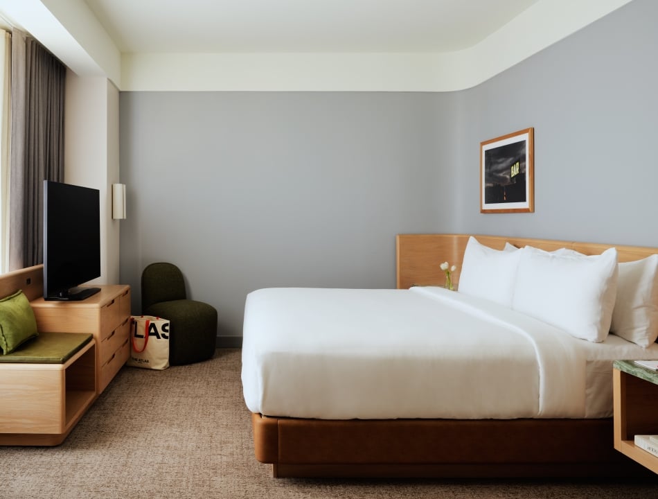 The Compass Suite offers uncompromised style in the heart of Allston. Enter into a stately foyer, leading to a private king bedroom and modern bath with walk-in shower, additional private vanity and soaking tub. The separate living area hosts a massive L-shaped sofa, dining table with seating for four, and a fully equipped kitchenette.